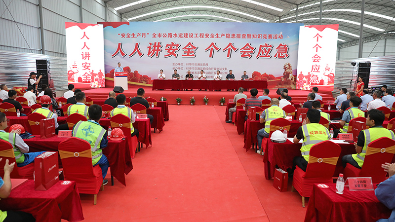 6月19日,由蚌埠市交通運輸局主辦,蚌埠市交通運輸綜合行政執法支隊和安徽省五蒙高速公路開發有限公司承辦,安徽省交通建設股份有限公司協辦的“安全生產月”蚌埠市公路水運建設工程安全生產隱患排查暨安全知識競賽活動,在五蒙高速公路04標拌和站隆重舉行。